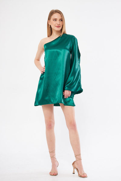 Adiva Zümrüt Yeşili Tek Kol Kloş Kadın Elbise