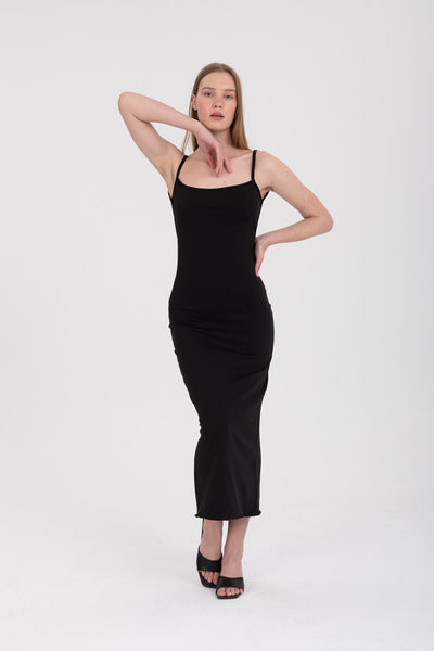 Cora Askılı Sırt Açık Uzun Siyah Kadın Elbise