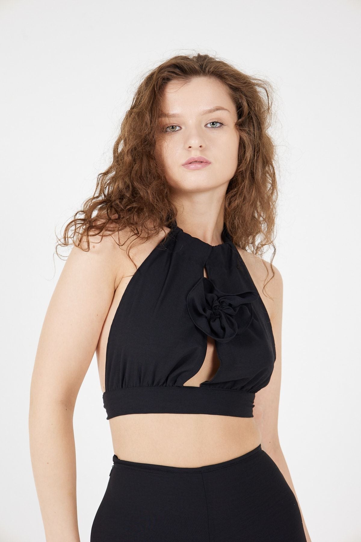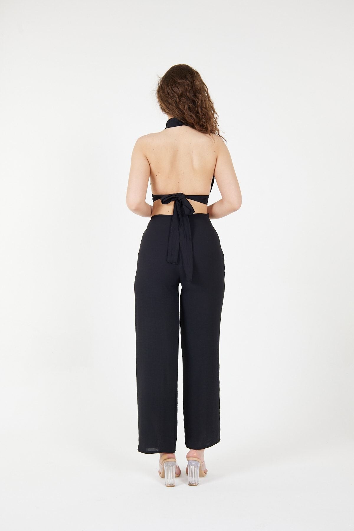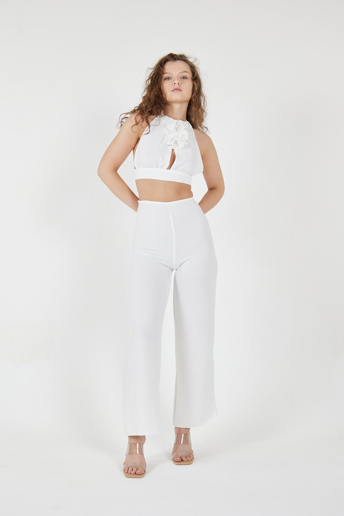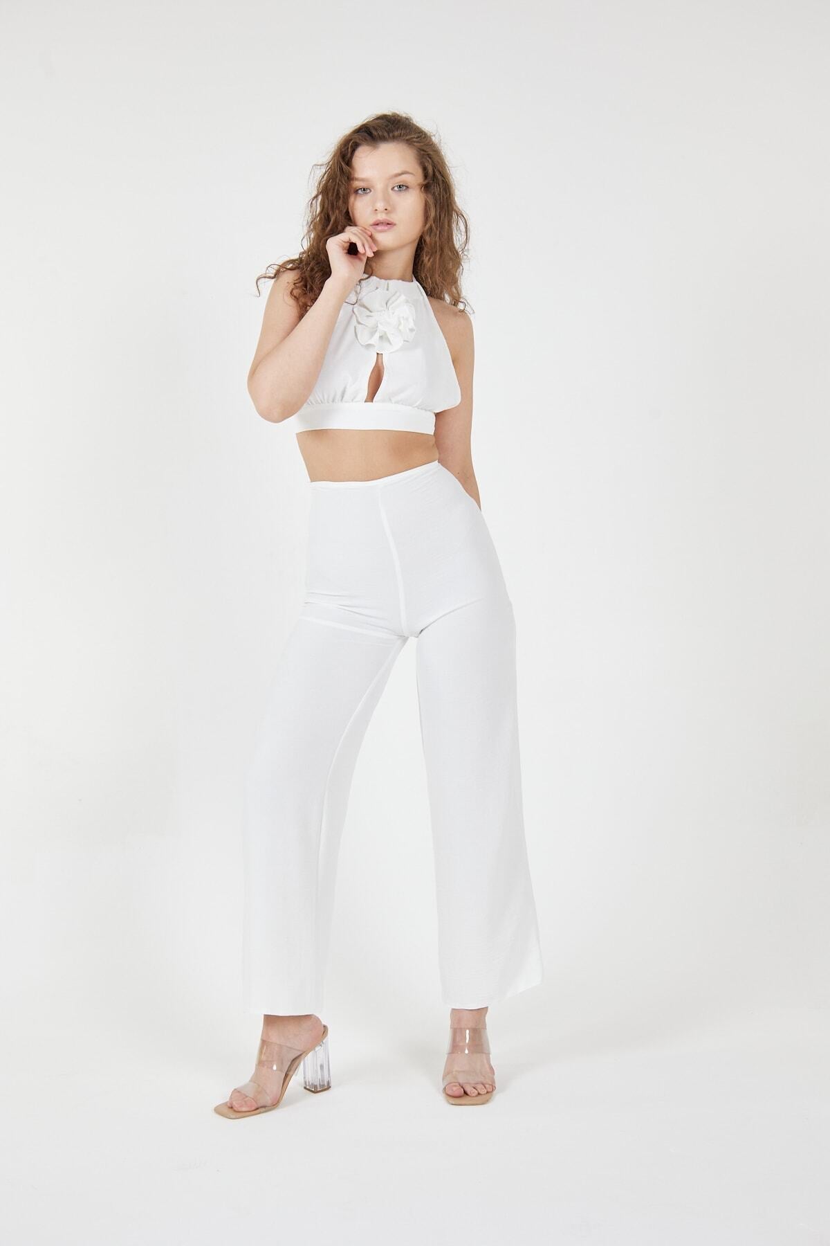 Dalia Palazzo Pantolon - Boyundan Bağlama Çiçekli Crop Kadın Takım