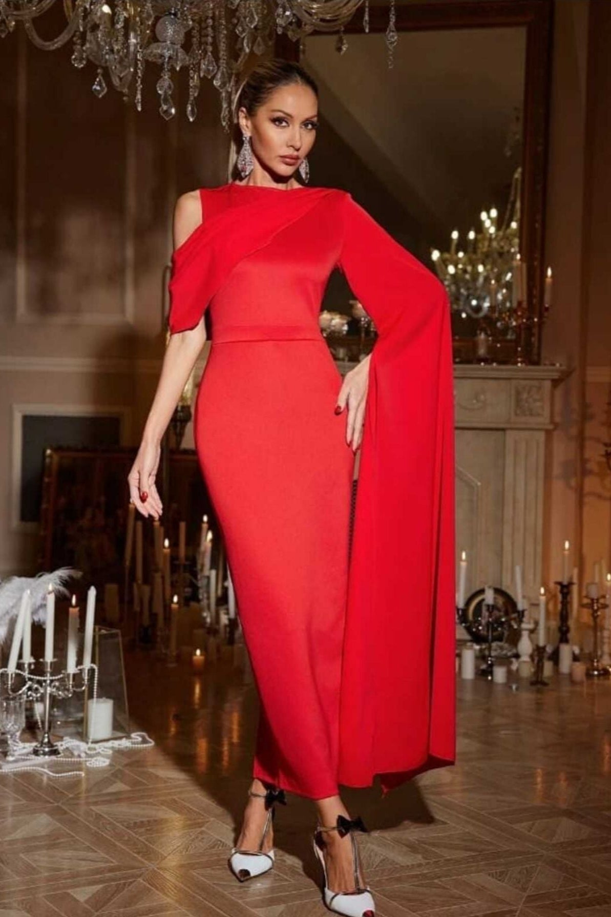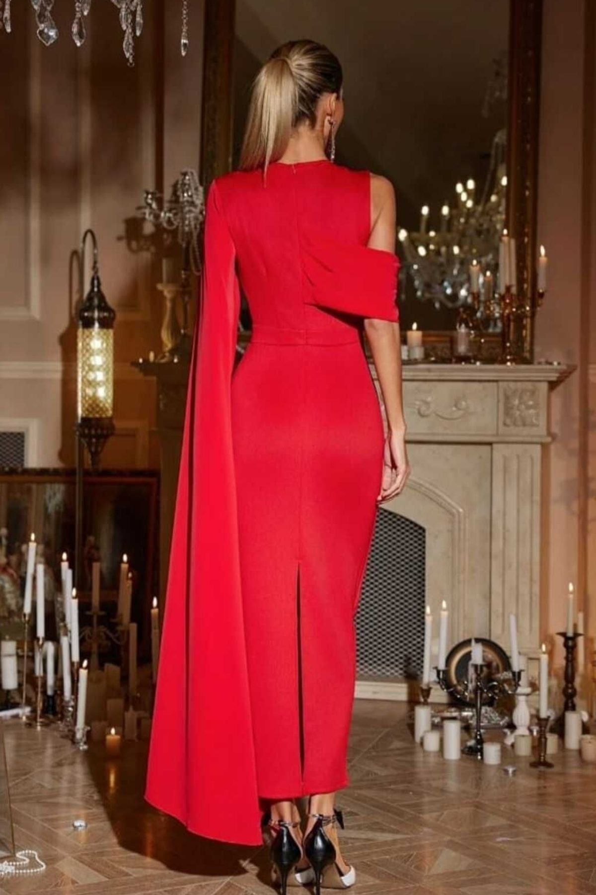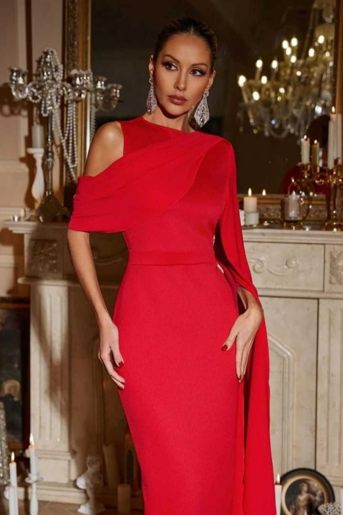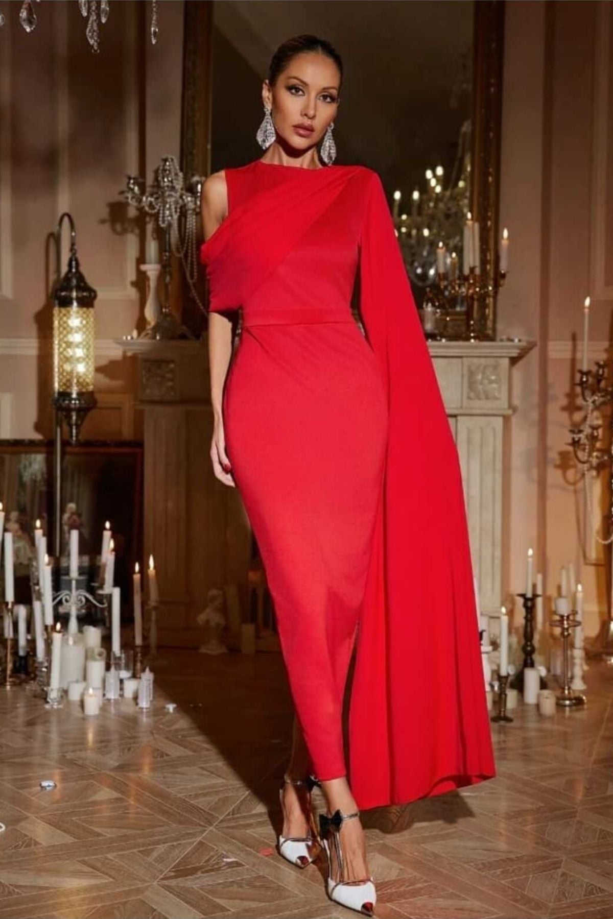Lu Kırmızı Tek Omuz Kadın Elbise